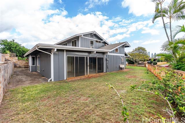 Large 2,200+ sq ft home with plenty of storage in a quiet cul-de-sac in Mililani. Features 4 bedrooms and 2.5 bathrooms, including a bedroom and full bath on the first floor. Freshly painted interior and exterior and a new(er) roof. Conveniently located near the Mililani Recreation Center's splash pad/pool. Perfect for family living with ample storage space for all your needs.