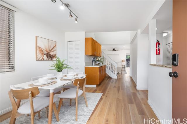 Step into this beautifully updated 3-bedroom, 3-bath end-unit townhome that blends modern elegance with everyday comfort. Thoughtfully remodeled, this home features brand-new flooring throughout and sleek, stylish bathrooms designed with attention to detail. The spacious kitchen offers plenty of counter space and storage. Perfect for cooking and entertaining. With two versatile nonus areas, this allows you the flexibility for a home office, playroom, or even a fourth bedroom to suit your lifestyle. Enjoy the convenience of two dedicated parking stalls and take the advantage of Mililani Town Association amenities, including pools, parks, and recreation centers just minutes away. Ideally located near high access, Schofield Barracks, and the world-class beaches of the North Shore, this home offers both location and lifestyle. Don't miss this rare opportunity to own a move-in ready home in the heart of Mililani! Schedule you private showing today!