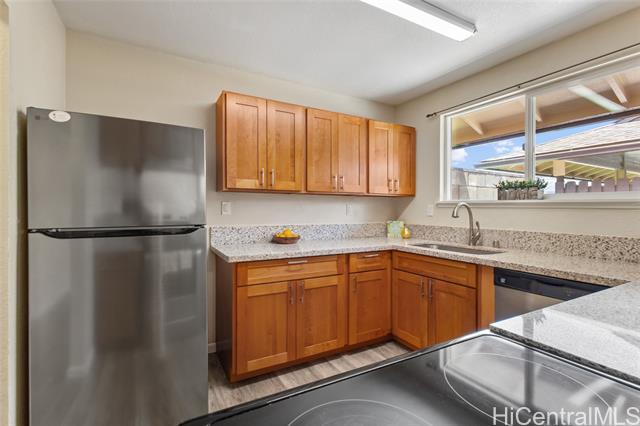 Come home to comfort, privacy, and simplicity in a space that feels welcoming from the moment you arrive. The freshly painted exterior creates a clean, inviting first impression and reflects a true sense of pride of ownership, while the newly renovated kitchen and bathrooms offer a modern touch that makes everyday living feel easy and enjoyable. Located in Mililani, this 3-bedroom, 2-bath home offers a manageable yard with just the right amount of outdoor space to unwind, enjoy morning coffee in the fresh air, and feel the trade winds. The setting provides a calming sense of space — a peaceful place to relax and recharge at the end of the day, without the burden of constant upkeep. A wonderful opportunity to own a home that feels both effortless and inviting, allowing more time to enjoy life and less time maintaining it, all while embracing the comfortable Mililani community lifestyle.