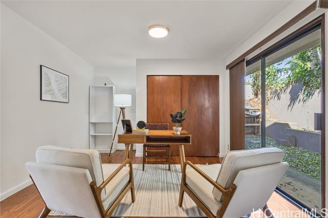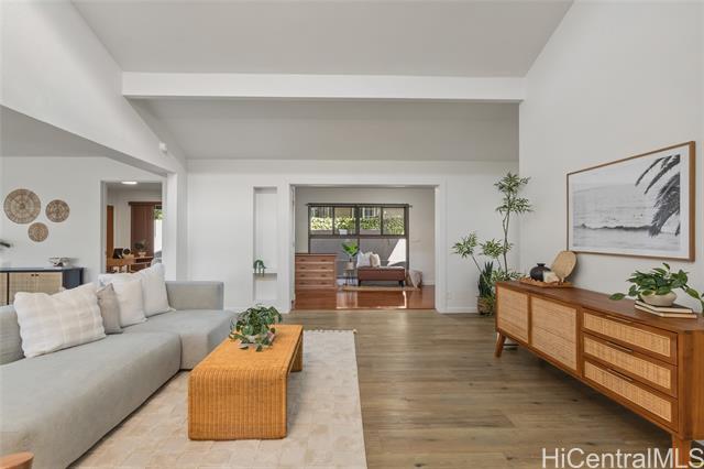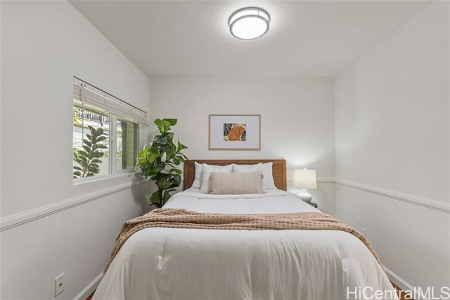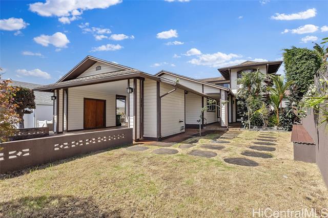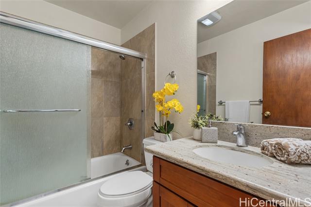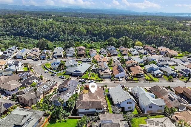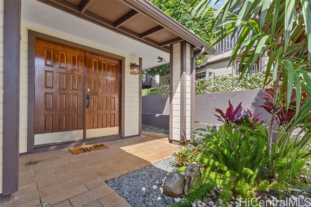 Beautifully upgraded and thoughtfully designed, this Mililani residence offers the perfect blend of comfort, flexibility, and style. Featuring 5 bedrooms, 4 full bathrooms, plus a den ideal for a 6th bedroom or home office, the layout is well-suited for multi-generational living. The main level includes 3 bedrooms + den and 2 full baths, including a primary suite with an en suite bath and walk-in shower. Enjoy an updated kitchen and a refined mix of vinyl and hardwood flooring throughout the main level. Upstairs offers a private retreat with 2 bedrooms and 2 full baths, a separate entrance, and a second primary suite with en suite bath—perfect for extended family, guests, or added living flexibility. Hardwood flooring enhances the upper living areas, with carpeted bedrooms for added comfort. Air conditioning throughout the home provides year-round comfort and climate control. Framed by lush front landscaping and conveniently located near Mililani Town Center and Mililani High School, this is elevated island living at its finest. Ask us about VA assumable!
