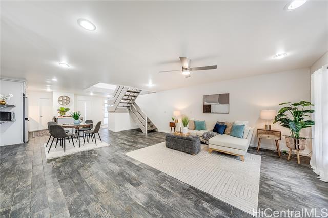 Ask your agent to inquire about the HOA decrease*! This thoughtfully redesigned 3-bedroom, 2.5-bath townhome sits in the heart of Mililani Town and offers the perfect blend of space, function, and location. Inside, you’ll find an open-concept living room *with extension* and kitchen with stainless steel appliances, ideal for everyday living and weekend hosting. The layout flows seamlessly, creating a warm and inviting atmosphere throughout the home. Updates are not limited to: kitchen, bathrooms, lighting, and don't forget about the additional square footage with the extended living room. Tree cover invites the tropical sounds of leaves in the breeze. Located in the Laulea Townhomes, enjoy a better blend of a smaller community and private feel. You’re just minutes from Mililani’s top amenities: recreation centers, neighborhood parks, shopping at Town Center, groceries, eateries, and 24 Hour Fitness. With an attached carport and additional parking stall, you'll have easy access to Schofield and the Freeway making commuting more convenient. The perfect option for anyone looking to enjoy the best of Mililani living.