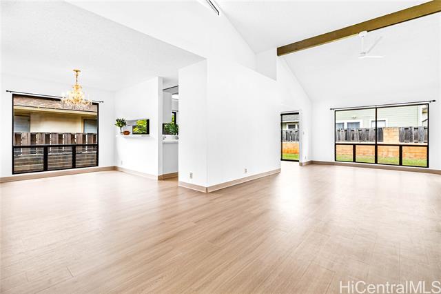 Beautiful, single-level family home in highly desirable Mililani! 3-bedrooms, 2-baths and 2-car garage! Situated in a quiet, established cul-de-sac with consistent ownership since 1992, this home offers a serene living environment. The spacious floor plan features vaulted ceilings, an open atmosphere and excellent cross-ventilation! New interior paint throughout the home and garage. Completely remodeled kitchen and bathrooms with brand-new cabinets, countertops, fixtures and finishes. New flooring in living room, kitchen, bathrooms and hallway. The property is fully fenced for privacy, with an easy, low-maintenance yard. Conveniently near Mililani Town shopping centers, great dining, entertainment, supermarkets, retail stores, recreation facilities and parks. Minutes from Kipapa Elementary, Mililani Waena Elementary, Mililani High School. and on/off freeway exits. Move-in ready! Come see and make this your new home!