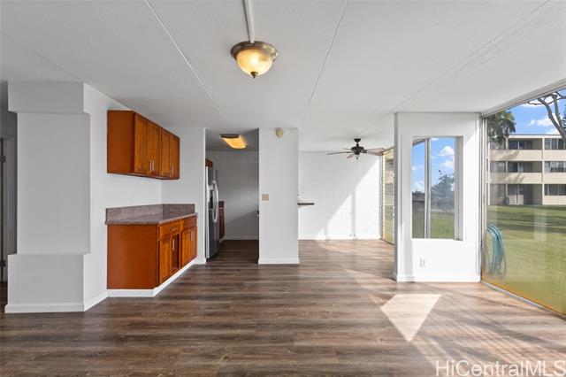 Welcome to Nahoa Apartments! This charming ground-level 2-bedroom, 1-bath unit offers a comfortable blend of convenience and value. Partially renovated in 2025, it features new vinyl flooring and an updated bathroom. The enclosed lanai adds flexible living space, while the redesigned open dining area—formerly closed off—creates a more spacious and inviting flow. Enjoy the ease of no stairs, one uncovered parking stall, and a pet-friendly community with low maintenance fees. A home warranty is included for added peace of mind. Ideally located near Safeway, Mililani Shopping Center, and other everyday conveniences—this is a great opportunity to own in a well-situated, desirable neighborhood.
