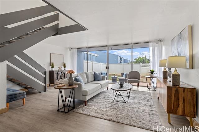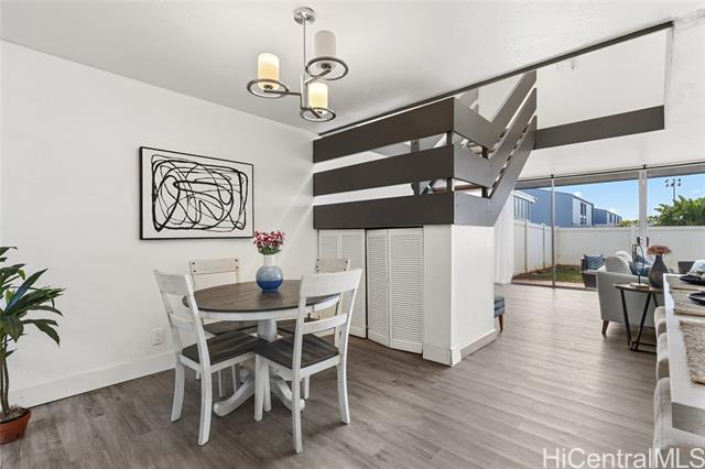 This is Living! and your opportunity to live and own in the highly desirable Laulea Town Houses. This spacious 3 bed, 2.5 bath townhome has over 1,400 square feet with a remodeled kitchen, new vinyl plank flooring and more! This home offers modern style, smart flow, and a prime Mililani location. Literally steps from Kipapa Elementary School and nearby parks makes this perfect for families and outdoor enthusiasts. The bright open living and kitchen area boasts stainless steel appliances and seamlessly flows out to a spacious fenced outdoor space that’s ideal for entertaining, play, or pets. 2 parking stalls (1 covered) and quick access to shopping, schools, restaurants, Freeway and Schofield. This home is priced to sell and schedule your showing today!