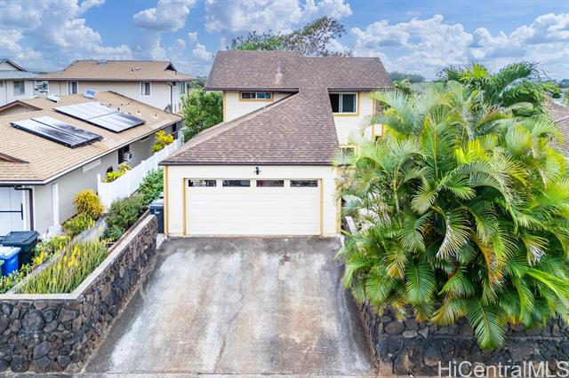 MOTIVATED SELLERS & PRICE IMPROVEMENT. Use $9K credit for rate buy down or closing costs. This beautifully updated Mililani home is a rare find offering a spacious open floor plan, freshly painted interior, & an A/C cooled wine closet. The new downstairs flooring & renovated bathroom add a modern touch while the split A/C system (2022) & new windows (2021) ensure year-round comfort & energy efficiency. Enjoy peace & privacy with no neighbors directly behind you in a location just minutes from shopping, movies, dining, & golf...no need to fight highway traffic! One of the property's standout features is its lush garden, featuring fruiting avocado, pomelo, and calamansi trees along with thriving aloe vera, dragon fruit, ginger, oregano, and basil plants —perfect for fresh, homegrown meals. The home also features a 2-car garage, first-floor bedroom/bathroom, a large storage shed, with access to the seven Mililani recreation centers that include pools, courts, playgrounds, & community centers. The friendly neighbors & low-traffic area make it perfect for families or those seeking a peaceful retreat. Don't miss out — this move-in-ready gem is priced to sell. Schedule your showing today!
