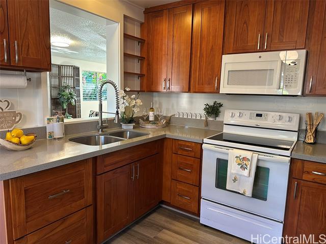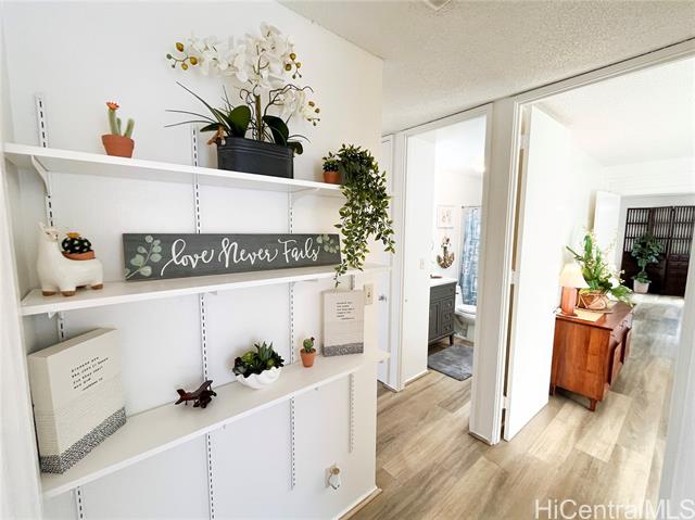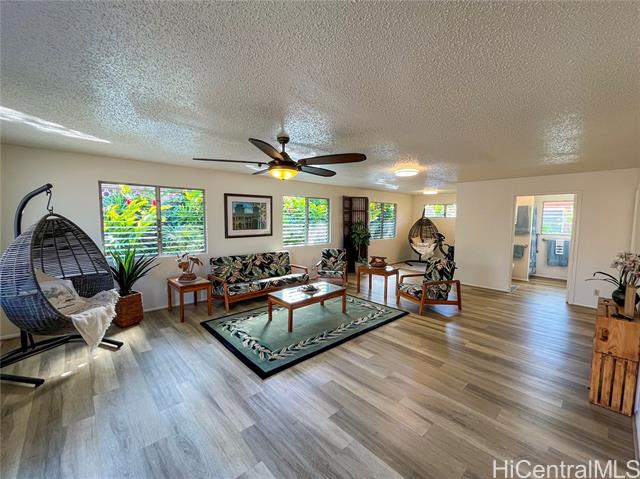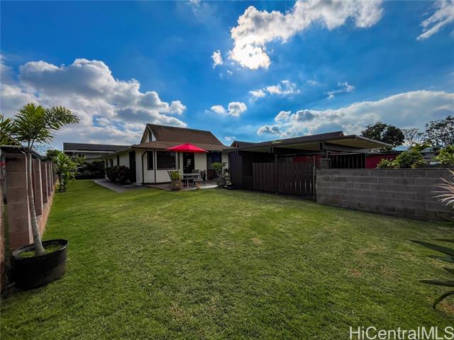 Welcome home! This is a move-in-ready, single-level home in the premier, highly desirable community of Mililani. Enjoy an open-flow layout with high ceilings, luxury vinyl flooring, renovated bathrooms and updated kitchen cabinets/counters. The expanded floor plan includes an additional large living area and a bonus flex space providing comfort and versatility. The washer and dryer is located indoors with shelving and storage space for added convenience during all weather conditions. Enjoy relaxing and entertaining outdoors in the front patio area or the back lanai surrounded by the large yard complemented with beautiful tropical plants. Location is everything! Just minutes from the H-2 freeway with easy access to Kamehameha Highway and bus lines to make daily commuting a breeze. Close to top-rated schools, military bases, parks, golf courses, shopping and restaurants. Residents of this vibrant community have access to Mililani's signature community amenities including recreation centers, pools, activities, classes and events. This loved home is ready for you to begin making memories.