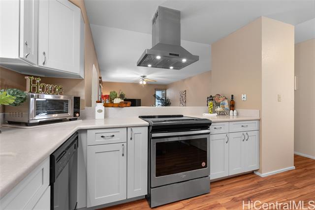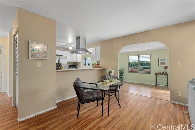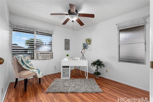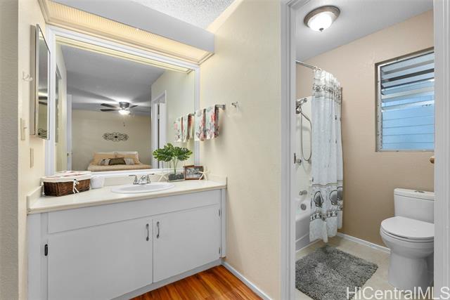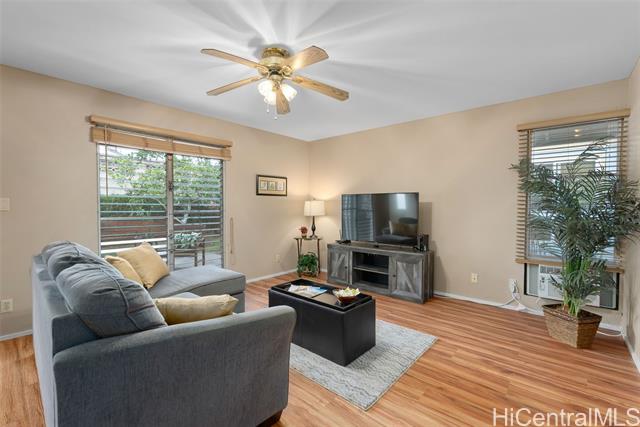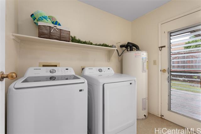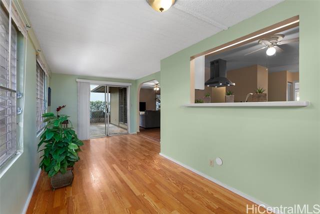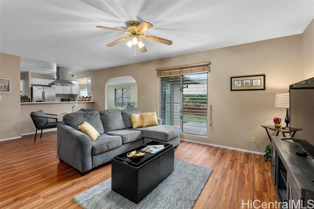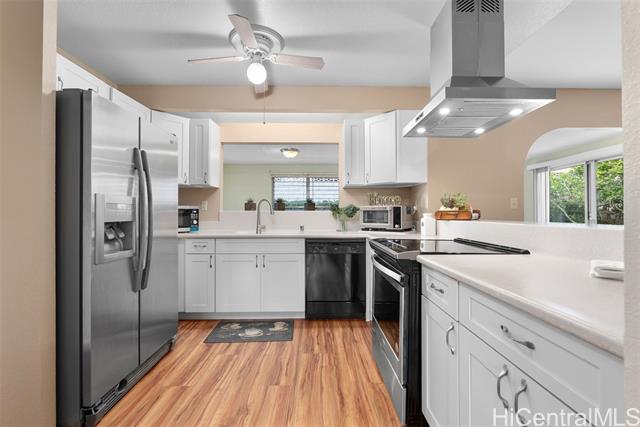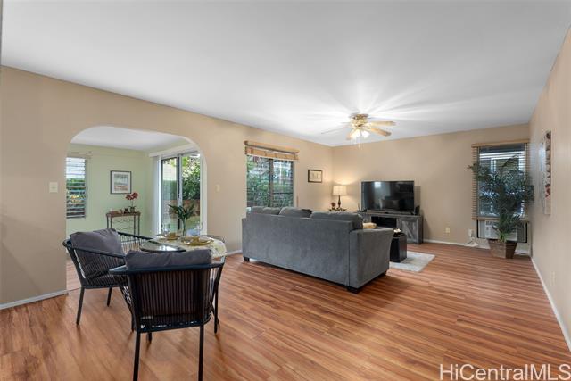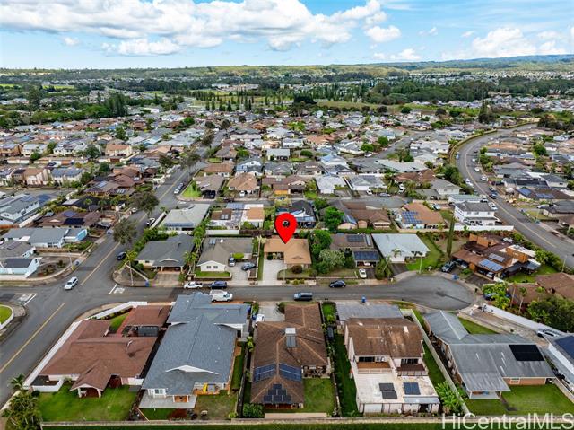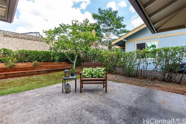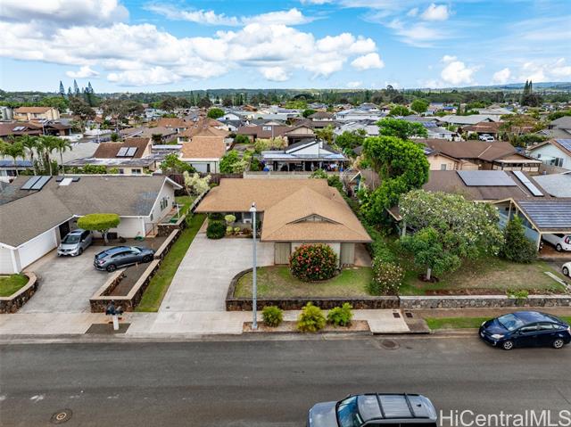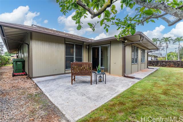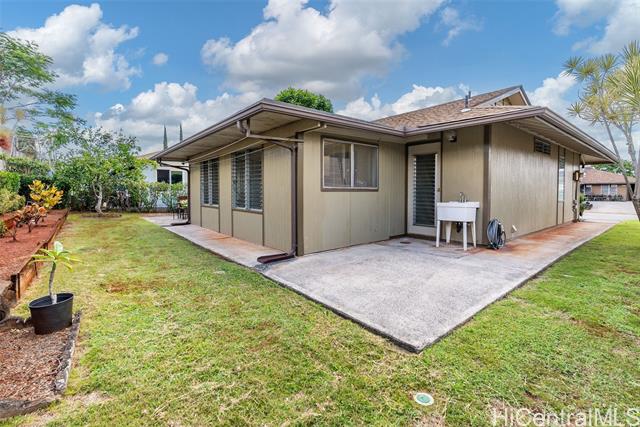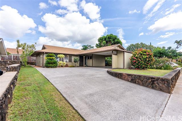 The Home you've been waiting for! Situated on a quaint Cul-de-sac, you'll drive into this Single-Level Home with great curb appeal from landscaping to exterior paint. Original owners have meticulously cared for this home & still do. A few Features include; New White Shaker Kitchen Cabinets, New Corian Counters & Sink, New fixtures, New SS Island range hood, New garbage disposal, Newer Washer & Dryer, New Bathroom Sinks & fixtures, New toilet, New Luxury Vinyl Plank Flooring in the shade of "Koa". Most interior rooms recently painted. New screens, New shut-off valves on all sinks & toilets. Roof & Gutters replaced 2009. New exterior light. Also included are 4 window A/C's, 5 Ceiling fans. The Primary Bdrm features a en-suite and walk-in closet. The back lanai was enclosed years ago to a Bonus room that overlooks the backyard. Sit outside on your lanai and enjoy an orange tree, terraced planter ready for your favorites. Mililani Town Assn has a lot to offer with 7 Rec Centers, 6 pools, events, classes. Lots of shopping & restaurants too. Please Join us at the 1st Open House Sun. Oct 19th 2-5pm