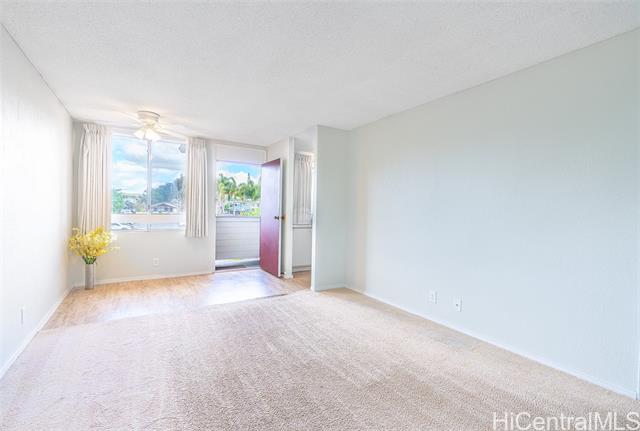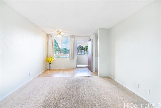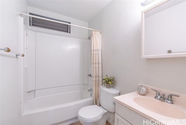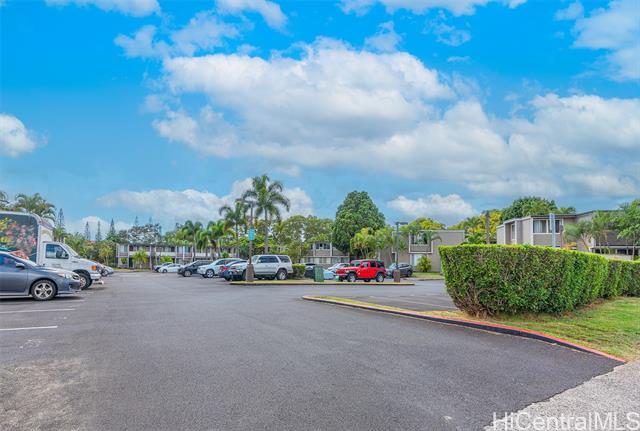 Rarely available second floor, corner-end one bedroom, one bathroom unit, with one assigned parking stall. Very convenient location close to shopping, parks and recreation centers in Mililani Town. Adequate guest parking within the complex. Monthly maintenance fee for Mililani Terrace at $370.84 and Quarterly Mililani Town Association fee at $165.