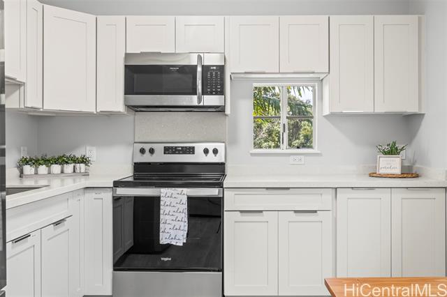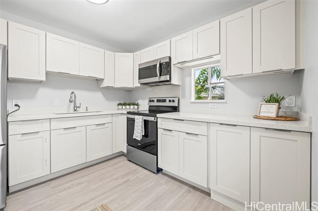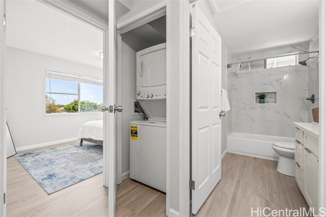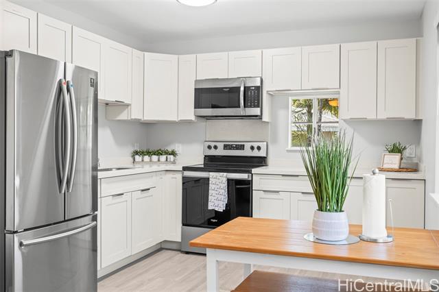 Charming Upgraded Corner Unit Townhome Welcome to this fully renovated unit that is 4 years young. Discover comfort and privacy in this beautifully maintained 1-bedroom, 1-bath corner unit. Featuring an open-concept layout with vinyl flooring, upgraded kitchen cabinets, modern stainless-steel appliances, quartz countertops, and modern fixtures. Additional perks include the in-unit laundry for convenience. Nestled in a well-maintained sought after Mililani Mauka community with easy access to local shops, restaurants, parks, and commuter routes.