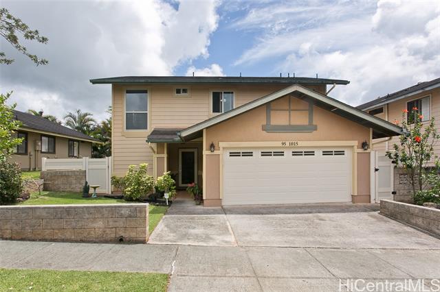 Attractively priced Destiny III at Mililani Mauka—where comfort meets style in this beautifully upgraded 4-bed, 2.5-bath home! This two-story single-family gem features a spacious 2-car garage and boasts brand-new kitchen and bathrooms with sleek cabinets and granite countertops. Enjoy the elegance of luxury vinyl plank flooring, cool split A/C units in the living room & primary suite, and ceiling fans in every bedroom for year-round comfort. Step outside to your fenced-in patio—a perfect space for pets, keiki, and weekend BBQs! Plus, with access to all 7 Mililani Recreation Centers, you’ll have endless options for fun and relaxation.