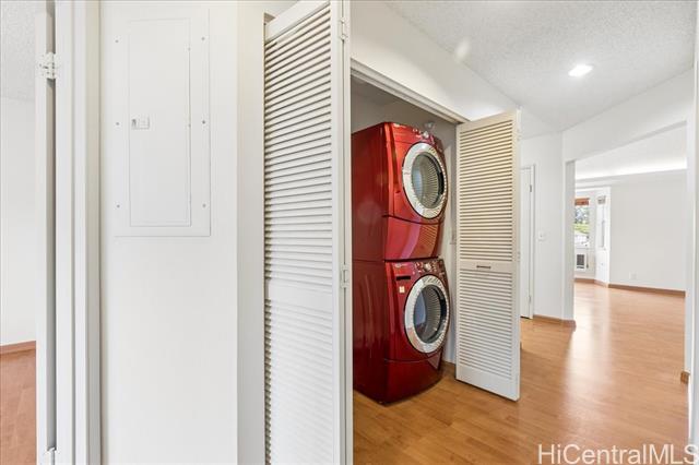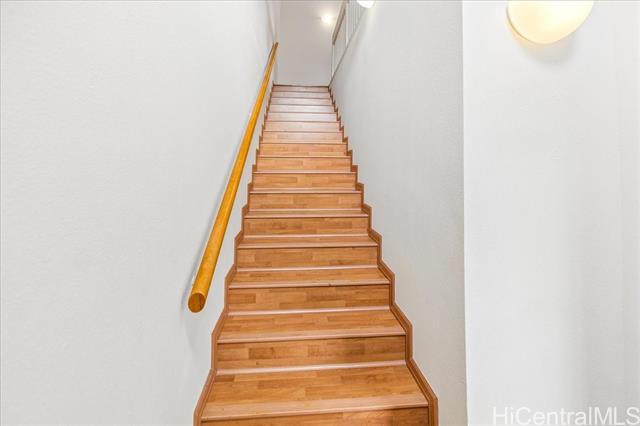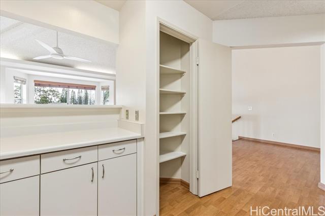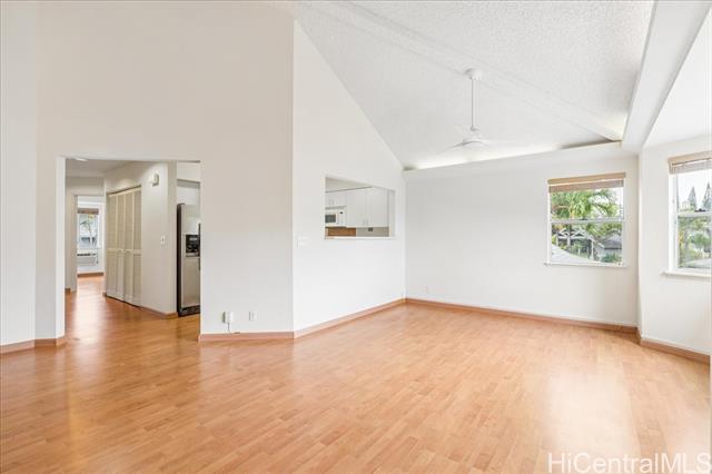 A rarely available, largest 2 bedroom 1 bath townhouse located in desirable Kumelewai Court 1. Feature impressive vaulted ceilings and a well-kept interior that's ready for immediate move-in. Parking stalls 287 & 307, with ample guest parking available. Excellent location directly across shopping center in Mililani Mauka. The MTA is $55.00 per month pay quarterly. This home also offers convenient freeway access. Don't miss this opportunity. A definite must see! Home sold in "As Is" condition.