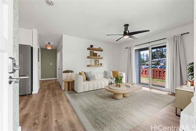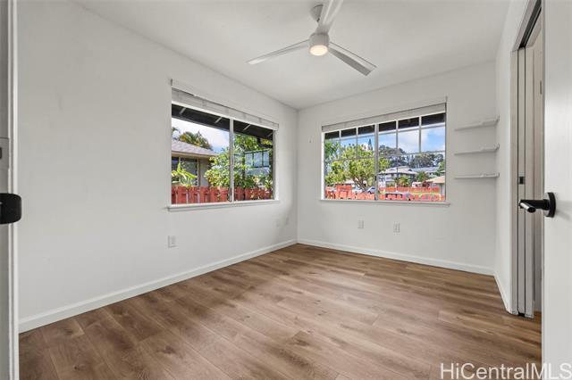 Rare, desirable single-level townhome in Ku'ulako 1, located in the sought-after Mililani Mauka neighborhood. Enjoy cool breezes, privacy with no unit above, and a large, 400 sq ft, fenced, usable yard with leveled slope. Features include new luxury vinyl plank flooring (2025) and a fully renovated kitchen and bathrooms. Two conveniently located parking stalls in front of the townhome, plus ample guest and street parking nearby. As a member of the Mililani Town Association, enjoy access to 7 recreation centers with pools, gyms, and community activities. Make an appointment today or visit us at our first open house on Sunday, 4/26 from 2-4pm!