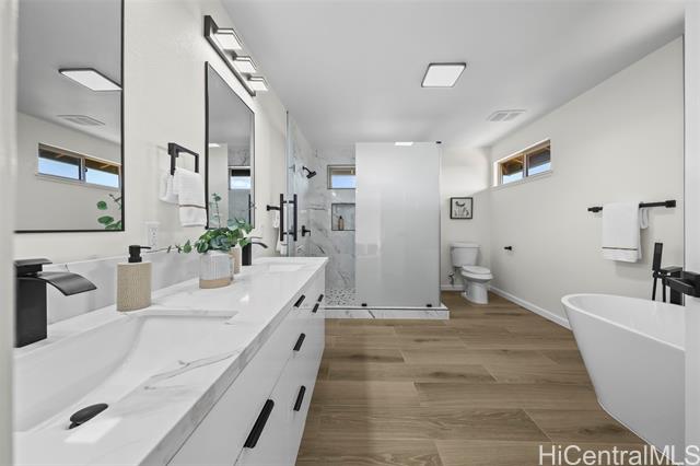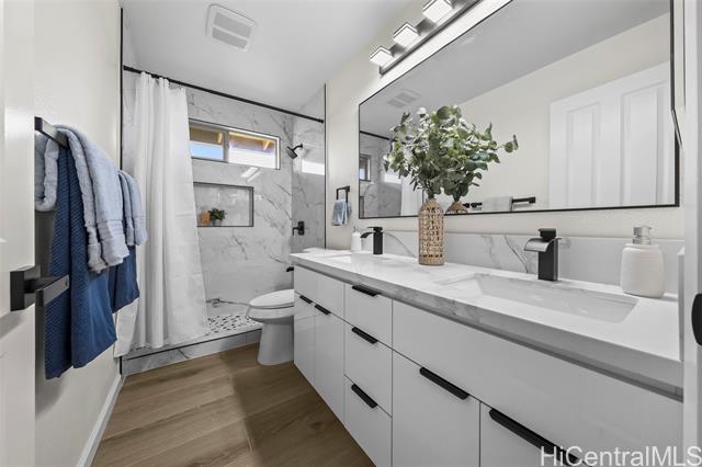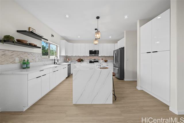 Peace and paradise await you in Mililani Mauka! This impressive 6 bedroom, 3.5 bathroom home is nestled along a quiet street and was thoughtfully renovated in 2025 to include brand new stainless steel appliances, luxury vinyl plank flooring, fresh paint, and fully upgraded bathrooms. Step foot through the front door to a large living room where views of the backyard palms wave at you through the glass sliding doors before making your way to the kitchen, neatly outfitted with sleek white cabinetry and a large walk-in pantry. Upstairs, you'll find spacious bedrooms, and in the primary bedroom, a walk-in closet, perfect for accommodating even the largest of wardrobes, and a beautifully customized bathroom that includes both a shower, and a soaking tub to promote total relaxation after the commute home. Last, but not least, head out to the covered lanai and imagine yourself with a good book and a cold drink in hand, enjoying the mauka breezes with your friends and family. Just a few minutes drive from Mililani Mauka Shopping Center, Mililani Mauka District Park, and several of MTA recreation centers. This one won't last long!