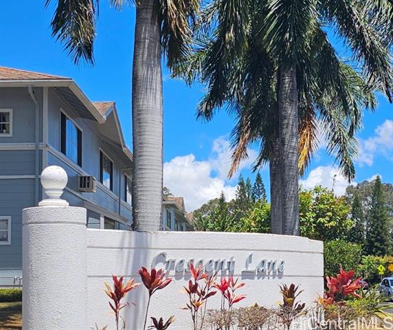 Cozy 2-bedroom, 2-bath corner/end ground-floor unit in Crescent Lane 3. Enjoy a private courtyard backing to open green space, giving the home a peaceful, private feel within a small community. Inside, you’ll find a modern kitchen and bath with upgraded cabinets, stainless steel appliances, and laminate/vinyl flooring throughout. Unit includes two side-by-side parking stalls plus extra storage for convenience. Low maintenance fees with access to seven Mililani recreation centers, offering pools, sports courts, and more. Pet-friendly (per house rules). Conveniently located—walk to schools, shopping, dining, and bus lines, with easy freeway access nearby.