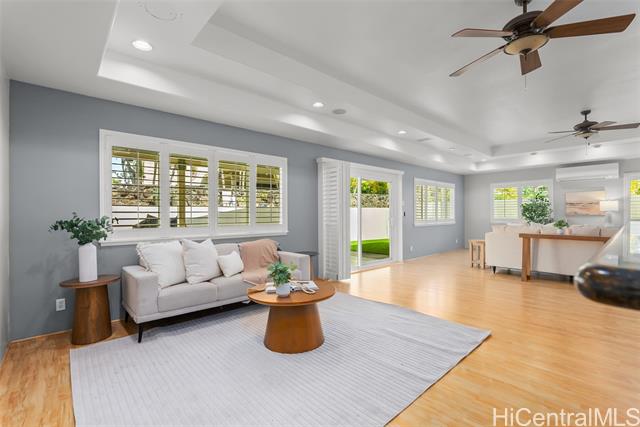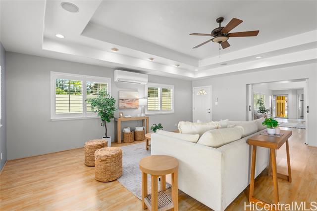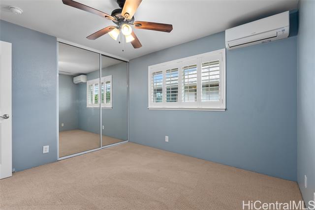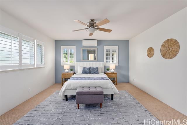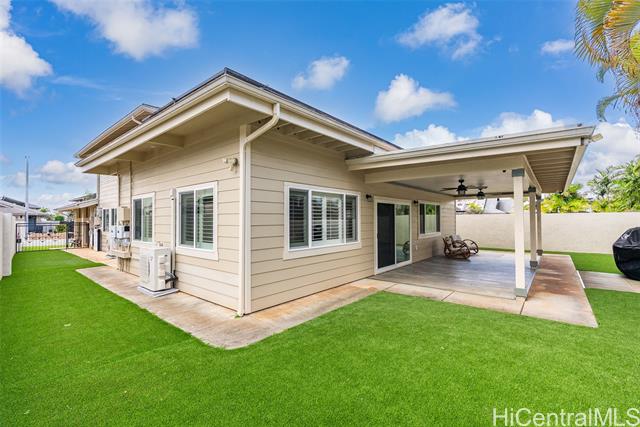 Space, Style & Smart Living in Mililani Mauka! This beautifully upgraded 4BD/3BA home offers nearly 3,000 sq ft of interior living, including a bedroom and full bath on the main level and a second living area with separate entrance—ideal for multi-generational living, guests, or a home office. Enjoy energy efficiency with 28 owned PV panels, solar water heating, Tesla powerwalls, and a Tesla EV charger. Stay cool year-round with split A/Cs in every room, plus upgraded windows and classic plantation shutters throughout. The home also features abundant storage, a roof approx. 5 years old, and a fully gated yard with low-maintenance turf, perfect for entertaining, pets, or play. Ideally located at the top of Mililani Mauka, offering privacy while remaining close to parks, award-winning schools, shopping, and dining. A rare opportunity combining space, flexibility, and modern upgrades in one of Central Oahu’s most desirable communities.