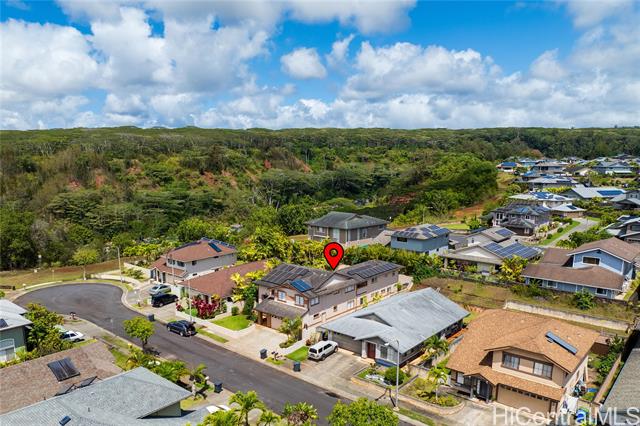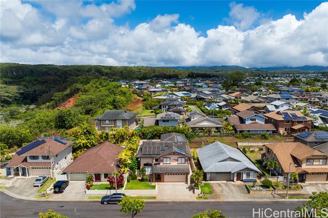 Step into a Mililani Mauka cul-de-sac retreat designed for real life and true luxury. This thoughtfully cared-for home features flexible multigenerational living with separate entrances, 3 full baths on the main level (including a spacious primary suite + additional living area), and a split A/C in every room for personalized comfort. 39 owned solar panels (NEM program), 2 attic fans, and insulation maximize efficiency. Outdoors, enjoy a lanai and landscaped yard with mature banana, citrus, avocado and Kona coffee trees and shady tropicals —perfect for gatherings or quiet mornings. Custom gates crafted specifically for this home provide security, while garage, driveway, and street parking make hosting easy. Set in a beautifully established neighborhood near parks, pools, shopping, dining, and top schools, this property blends privacy, convenience, and timeless Hawai‘i living.