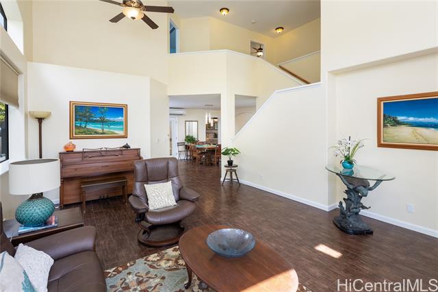 Multi-Gen in Mililani Mauka \ Lock-off Style Privacy \ Owned Solar (NEM) Flexible living areas can be separated or connected by opening/closing a door. The exceptional addition completed in 2017 and a full home refresh in 2025. Lives as one home or as multiple private living areas with separate entrances. Set on a cul-de-sac with a private, gated yard. The upstairs primary suite has high ceilings, walk in closet, ensuite and a peaceful, private lanai. On the main level an additional primary suite has the flexibility to be it's own suite or attached to the additional studio style living area with a private entrance, bath and convivence area or incorporated in the main house. A private 2nd story 2-bedroom wing includes it's own W/D, frige/snack area. Energy upgrades: 39 owned PV panels with highly coveted NEM program, split A/C in every room, attic fans and insulation throughout. Ample parking. Mililani has 7 rec centers with pools, courts, playgrounds and other amenities. The community enjoys sidewalks, dog friendly vibe, streetlights and nearby shopping, it cant' be beat! With its size, layout upgrades and flexibility this home represents exceptional value, see it before it's gone!