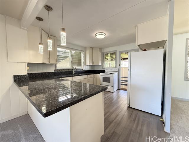 Spacious single-story four-bedroom, two-bath home located just off of Makaweo Avenue in the heart of Wahiawa Town. This home is in great condition and features new carpet throughout. The large primary bedroom offers a walk-in closet and a spacious bathroom with double sink and walk-in shower & seating, providing comfort and privacy. The home also includes upgraded kitchen cabinets and solid surface countertops, perfect for everyday living and entertaining. Additional highlights include two separate covered parking areas, open parking and a convenient location close to Schofield Barracks, Wheeler Army Airfield, shopping, and restaurants.