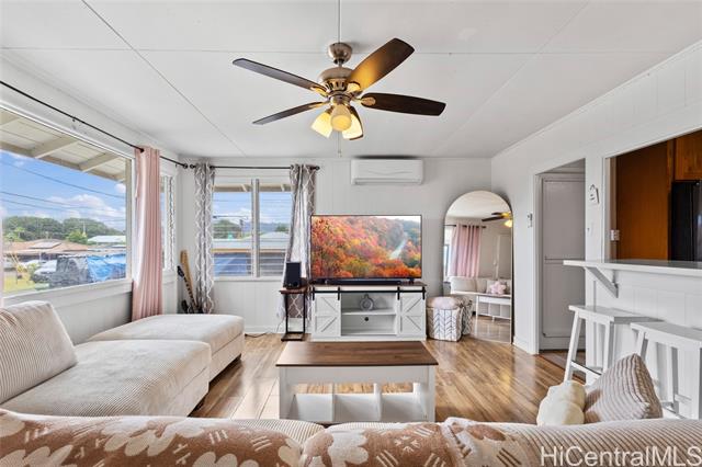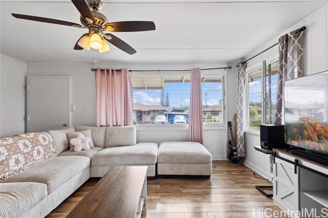 No HOA – Single-family home with a yard and a separate 1-bedroom unit in the back—ideal for extended family or rental income, previously rented out for $1500/month. Remodeled throughout in 2020 with a new roof, new windows, updated kitchen, and appliances. New paved driveway added, 24 owned solar panels, and split AC systems added in the main home and in the separate 1 bedroom. Conveniently located just minutes from Schofield Barracks.