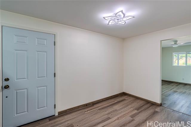 Step into your dream home—this fully remodeled Wahiawa gem feels brand new inside and out! Sitting on a generous 6,726 sq. ft. lot, the property showcases a spacious backyard adorned with a mature orange tree, a shared mango tree, and thriving dryland taro, creating a lush tropical retreat. Enjoy the refreshing cool mountain breezes and serene views from your beautifully upgraded home that blends modern comfort with island charm—truly a rare move-in-ready opportunity in the heart of Wahiawa