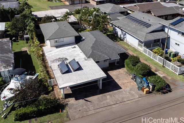 E komo mai! Welcome to 43 Nanea Ave where NOSTALGIC Wahiawa living meets SPACIOUS & COMFORTABLE living options for alll This 6-BEDROOM, 3.5-BATH home boasts 3-LIVING SPACES, 4 PARKING STALLS & offers MULTIPLE LIVING OPTIONS for large, extended & multi-family living. Former owners extended this home in 1983 and 2008 enclosing the original carport and adding on 3 bedrooms, 2 bathrooms and a recreation room. Four of the six bedrooms are located on the first level. The interior 2,592 sq ft is fully permitted with an outdoor slate patio finished with a stylish awning for outdoor gatherings. Asphalt shingle roof was replaced in 2020 & property was tented/fumigated in 2023. Tons of storage options including a large secured shed behind the carport, double closets in two bedrooms & a nice size walk-in closet in the upstairs primary en-suite bedroom. This property is a single-family condominium residence (CPR home #A) with back neighbor #B comprising Kalulu Condominium. Wahiawa is a unique blend of iconic & trending businesses & restaurants with Schofield, Wheeler, Queens Hospital, UH Agriculture, and Value-Added Center nearby. Walking distance to California Ave, Wahiawa town & more.