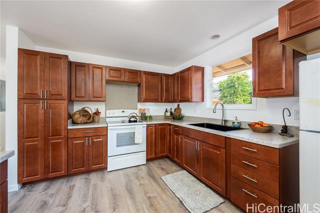2007 Rebuilt home in Wahiawa and finishings in 2025! Like new! No Association or Maintenance Fees! Beautiful 3-bedroom, 2 bath, 2 car enclosed garage with large driveway for at least 6 parking. Fenced large property! Still room on property to customize your home. New appliances to include water heater, stove/oven, refrigerator and disposal. All new windows, paint and flooring. Near to restaurants, shopping, entertainment and public transportation. Ready for new owner! Public Open House Saturday November 22 and Sunday November 23 2-5pm.