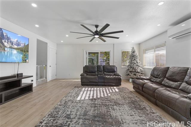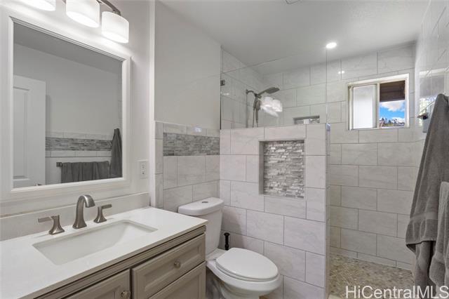 This large, renovated Wahiawa Heights property is perfect for big families or multi-generational living. At almost 2,000 SF of interior space and two bedrooms on the bottom floor, the extensive, flexible floor plan provides the space you are looking for. Renovated in 2023, almost everything feels new. From new lighting and electrical, plumbing, flooring, cabinets, and more, this is not your typical Wahiawa Home. Located up in the heights, the level 6,500+ SF yard is fully enclosed for added safety and privacy. Once you see it in person, you'll fall in love! Call your realtor today!