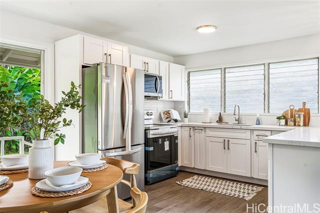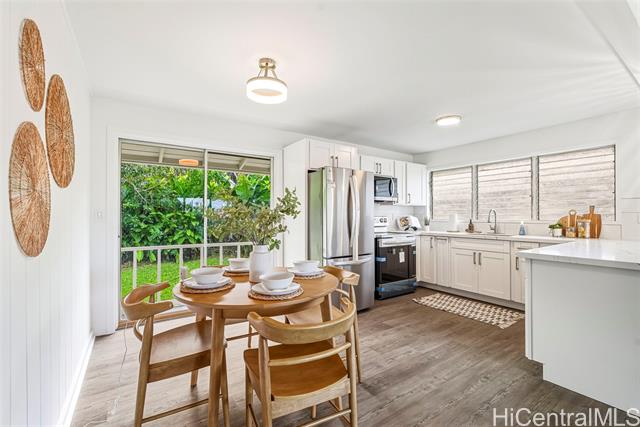 Wahiawa living in this delightful single-family home. This 3-bedroom, 2-bath residence offers a modern kitchen and baths that were upgraded this year with new cabinets vanities and appliances. The kitchen opens to the living room. The kitchen features ample cabinet space and a functional layout, new vinyl floors throughout. The entire interior and exterior has been recently painted. Outside, enjoy the spacious yard with mature landscaping-ideal for outdoor gatherings or gardening. The carport and driveway allow for 4 cars. Located close Wahiawa Town's shops, dining, Schofield Barracks and Wheeler Army Airfield. Enjoy the tranquil surroundings while having easy access to the rest of the island.