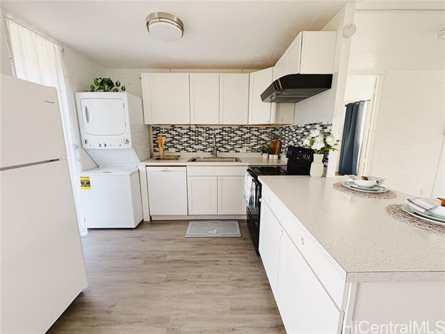 Step into an incredible opportunity for first-time homebuyers or investors! This upgraded unit features a modern kitchen with new cabinets, countertops, appliances, and lighting fixtures. The popcorn ceiling has been removed, retextured, and freshly painted, while new vinyl and laminate flooring throughout the unit and a refreshed bathroom add a clean, contemporary touch. Enjoy the convenience of an in-unit washer/dryer combo, a new water heater, and great airflow. Perfectly situated near Mililani Town, Schofield Barracks, and with quick freeway access, you’ll find shopping, dining, and entertainment options like Costco, Walmart, and Ross just a short drive away. This home offers a perfect blend of modern updates and everyday convenience in a highly desirable location. Plus, the pet-friendly policy means your furry companions are welcome. Additional perks include an assigned parking stall, access to a community pool, and a nearby park. Offering a blend of modern updates, comfort, and convenience, this home is one you don’t want to miss!