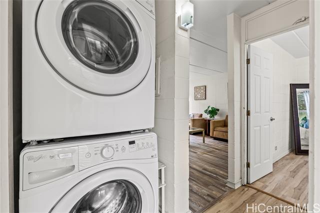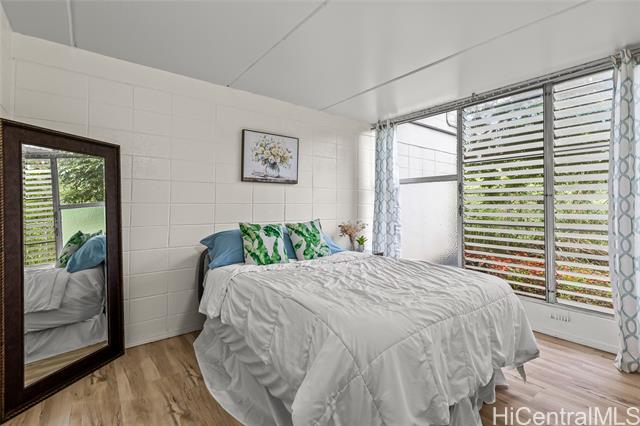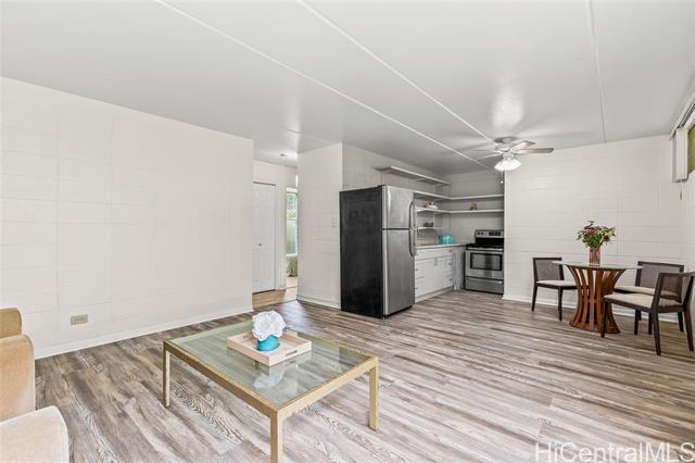 Are you looking for a cozy 2-bedroom/1-bathroom/1-parking condo with no stairs in Mililani for under $350k? You just got lucky! This spacious ground floor unit at Waipio Gardens features an open floor plan, a community garden in front and back of the unit, an upgraded kitchen, and a renovated bathroom with a new shower and vanity. Smooth ceiliing! This condo also includes vinyl flooring and a front-load washer and dryer. Located in a quiet area in Mililanni near Schofield Barracks, Wheeler Army Airfield, Mililani Golf Club, and Mililani Shopping Center, with the North Shore just a short drive away. This is a great opportunity for first-time home buyers and investors alike.