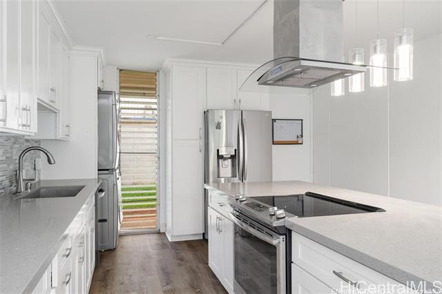 VA Assumable at an incredible 3.75%! One of the best-priced three-bedroom units on the entire island. This beautifully upgraded ground-floor 3-bedroom home is move-in ready. Step into a modern living space featuring a fully renovated kitchen with stainless steel LG appliances, an oversized island with range hood, soft-close shaker cabinets, pendant lighting, and luxury vinyl flooring throughout. Both bathrooms have been tastefully updated with fresh vanities and finishes. The spacious primary suite includes a walk-in closet complete with a built-in organizer system for maximum functionality. You’ll love the generous storage options and two covered parking stalls, plus the convenience of being just steps from the pool and recreation area—perfect for relaxed island living. This is an exceptional opportunity you don’t want to miss. One or more photos have been enhanced.