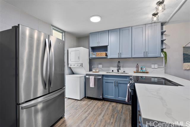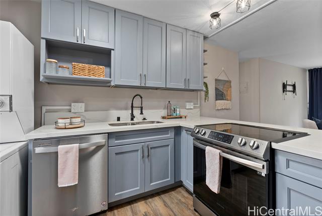 Welcome home to Northbrook Melemanu in Mililani! This charming 2-bedroom, 1-bath unit offers a renovated kitchen and bath, in-unit washer/dryer, and a private balcony with peaceful green views and no back neighbors. Enjoy the convenience of 2 ASSIGNED PARKING STALLS, plus community amenities like a pool, BBQ areas, and walking paths. Nestled in the Mililani neighborhood, known for its award-winning schools, and just minutes from shopping, dining, Schofield and Wheeler military bases, and freeway access. This property offers a VA assumable loan at an incredible 2.25% interest rate with a loan balance of approximately $270,000 — a rare opportunity for VA qualified buyers! NOTE: There is NO INCREASE in maintenance fees for 2026!