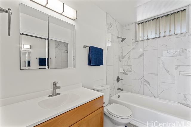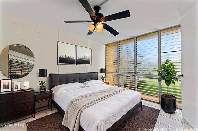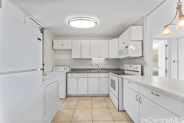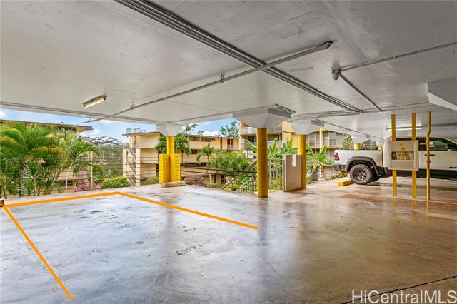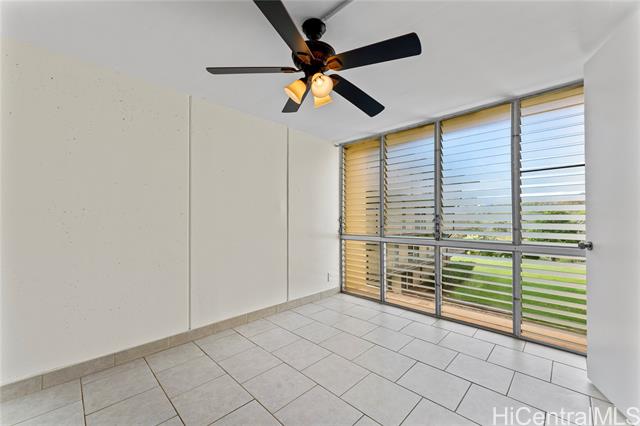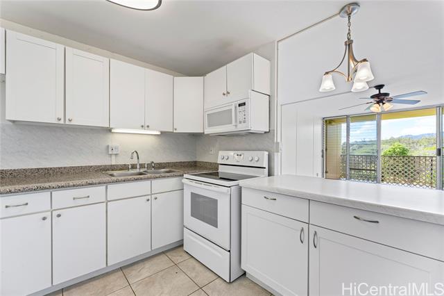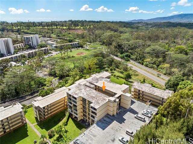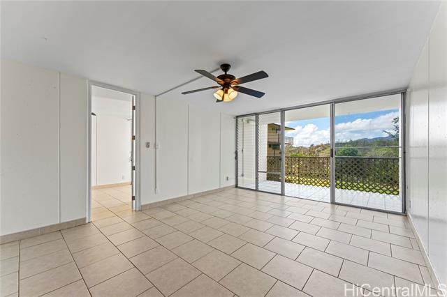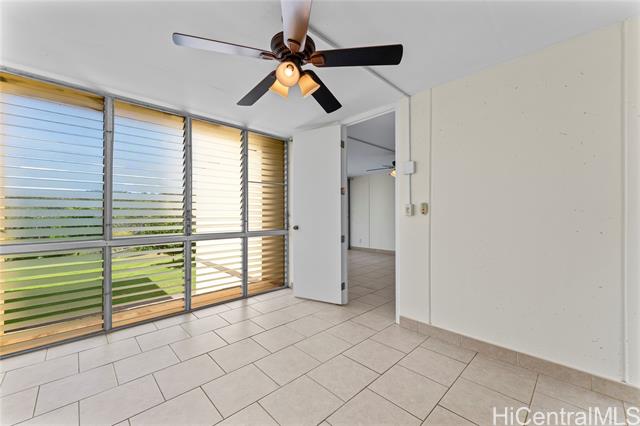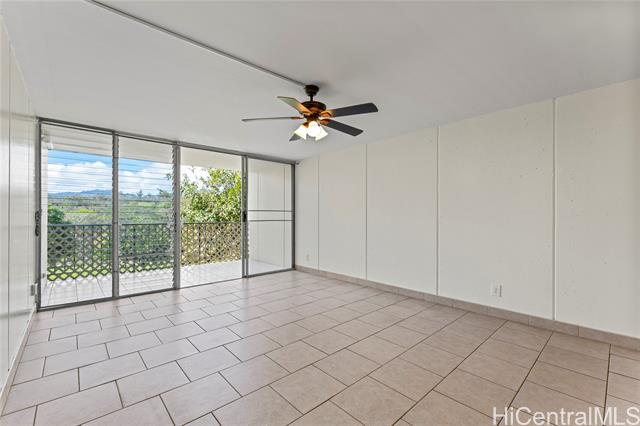 It’s move in ready! This condo had been freshly painted, has ceramic tile flooring throughout, no popcorn ceiling, a full-size washer and dryer, ceiling fans, and a large lanai that overlooks a grassy area with forest and mountain views. You’ll also love the floor to ceiling jalousie windows that bring in cool breezes and create a bright, open feel in this spacious second-floor unit. The peace and quiet of living in this rarely available 1-bedroom condo, with a large walk-in closet, is a compelling reason to see it soon. The 2 covered parking spaces are conveniently located on the same level as the apartment. The Ridgecrest is a well-run, fully insured, pet-friendly community, with a very low HOA fee that includes water, sewer, a huge swimming pool, tennis courts, a new fully fenced in dog park, and plenty of guest parking. It also has an abundance of green common spaces that includes papaya, banana, mango, and avocado trees. Ridgecrest is in a fantastic location just minutes away from shopping, restaurants, entertainment, Schofield Barracks, and Wheeler. Melemanu park is just down the hill with a playground, basketball courts, and baseball fields. This home is waiting for you!