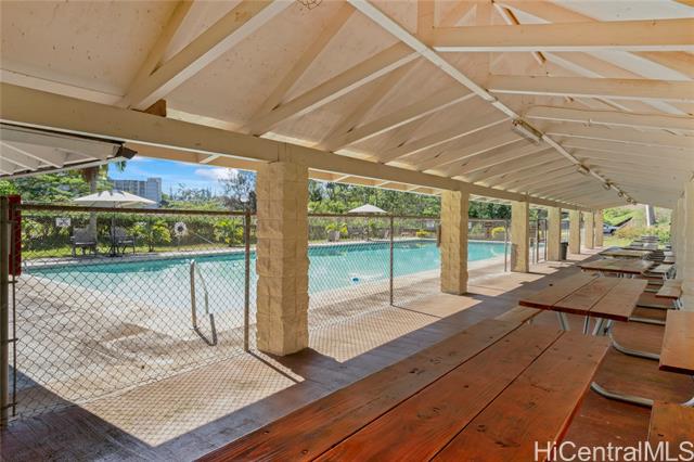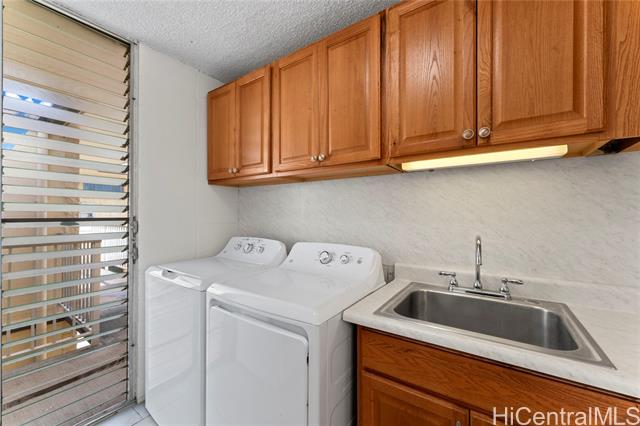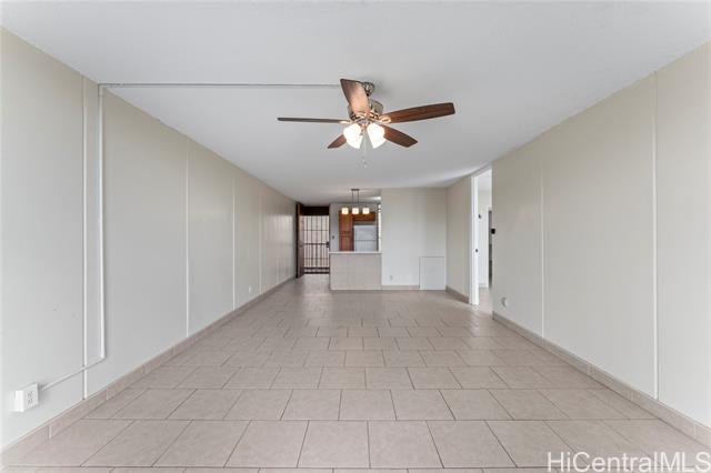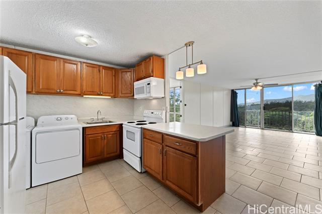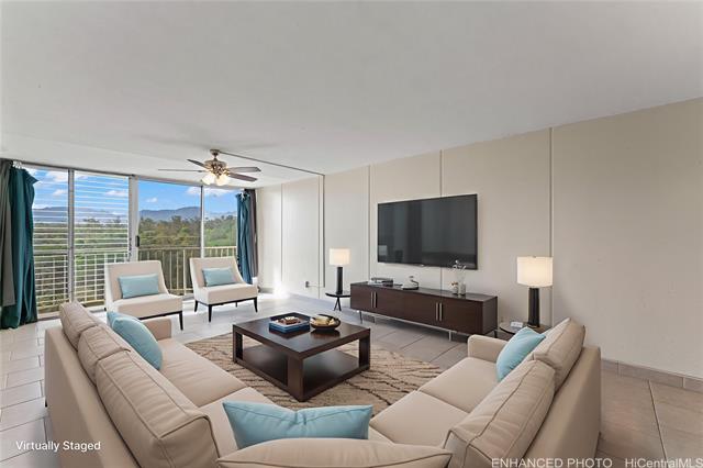 It’s move in ready! This condo is a top-floor, corner unit with ceramic tile flooring throughout, a full-size washer and dryer, ceiling fans, and a lanai that overlooks a grassy area with forest and mountain views. You’ll also love the floor to ceiling jalousie windows that bring in cool breezes and create a bright, open feel in this spacious sixth-floor unit that also comes with 2 parking spaces. The peace and quiet of living in this rarely available 1-bedroom condo, with a large walk-in closet, is a compelling reason to see it soon. The Ridgecrest is well-run, fully insured, pet-friendly, with a very low HOA fee that includes water, sewer, a huge swimming pool, tennis courts, a new fully fenced in dog park, and plenty of guest parking. It also has an abundance of green common spaces that includes papaya, banana, mango, and avocado trees. Ridgecrest is in a fantastic location just minutes away from shopping, restaurants, entertainment, Schofield Barracks, and Wheeler. Melemanu park is just down the hill with a playground, basketball courts, and baseball fields. This home is waiting for you!