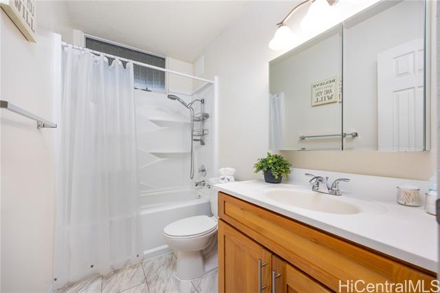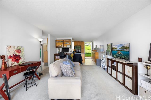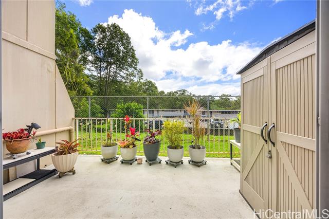 This beautifully upgraded, fully furnished, condo offers exceptional privacy, quiet, and quality. Positioned at the rear of the complex, away from traffic and common areas, Building B at Valleyview overlooks open green space and soaring Rainbow Eucalyptus canopy — a setting known to command a consistent market premium. Seldom available ground floor unit with peaceful views from two private, gated, lanais. Solid concrete construction and top-of-valley position cooled by trade winds create a naturally calm environment. Thoughtfully upgraded - smoothed concrete walls, fresh paint, updated plumbing and electrical, remodeled kitchen with Staron countertops, solid wood cabinetry, and built-in office. Structural and lasting improvements, not cosmetic gestures. Additional features include: an in-unit W/D, 2 BOD approved ACs, dedicated storage shed, 2 covered parking, and ample guest parking. It’s very PET friendly with a huge pool, BBQ areas, and is just up the hill from Melemanu park with a playground, basketball, and ball fields. Easy access to Costco, Walmart, restaurants, Mililani Town Center for shopping, Schofield/Wheeler, and North Shore, come visit our OH on 4-12-26 from 2-5pm.
