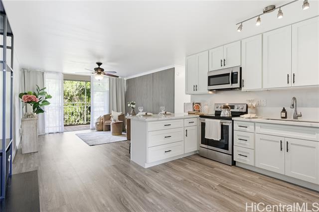 Enjoy peaceful mililani living in this corner end unit 2 bedroom renovated turn key located in Waikalani Valley community. This move in ready features ope. layout, private lanai with lush views and 2 dedicated parking stalls. Enjoy the community amenities, community and shooping center nearby for your daily needs and minutes away from Wheeler and Schofield Military Base. Come, See and Start Moving In Today.