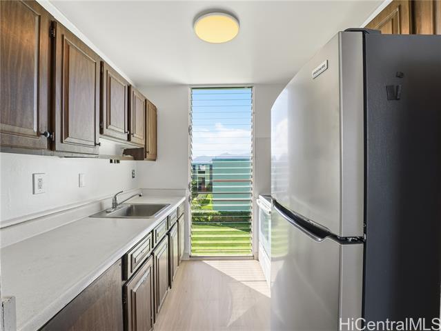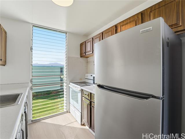 Welcome home to this beautifully refreshed 2-bedroom, 1-bath condo in the heart of Wahiawa. Featuring fresh interior paint and durable vinyl plank flooring throughout, this move-in-ready unit offers a clean, modern feel with low-maintenance living. Located on the third-floor corner, this unit enjoys excellent cross-breezes and added privacy, creating a comfortable island lifestyle without the need to rely heavily on AC. Natural light fills the space, and the thoughtful layout makes the most of every square foot. Ideal for those looking to be near Schofield Barracks and Wheeler Army Airfield, this central location offers convenient access to work, shopping, dining, and the North Shore beaches. Whether you’re a first-time buyer, investor, or looking to downsize, this condo offers comfort, convenience, and value. Complete with one assigned parking stall, this is an excellent opportunity to own in a well-located community in Central Oahu.