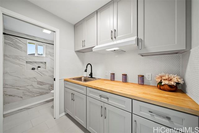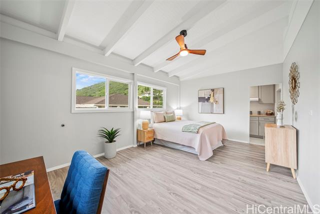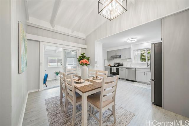 One level home on a level 8,446 sq ft lot in highly sought-after Aina Haina. No stairs to climb. Approximately $250,000 in upgrades and truly move-in ready. Fresh interior paint on redwood walls, new luxury vinyl flooring, brand new kitchen with quartz countertops, new cabinetry, backsplash and stainless appliances, plus beautifully renovated bathrooms with modern finishes. Bonus studio/flex space off the kitchen and dining area with wet bar, brand new full bath, and separate entrance ideal for guests, extended family, or home office. Huge backyard with avocado and lychee trees, new vinyl fencing, and gated side access. Spacious 2-car garage with new washer and dryer. Flood Zone X. Don’t miss this opportunity to call Aina Haina home.