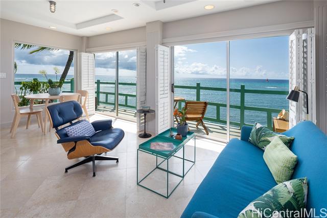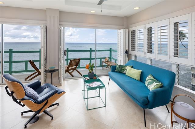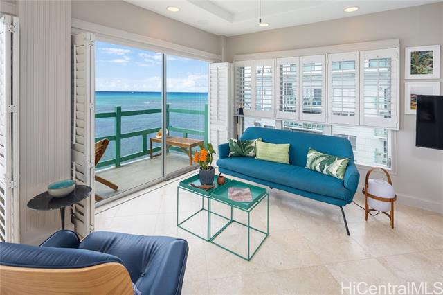 Experience classic Diamond Head living in this rare oceanfront residence at Diamond Head Ambassador - one of Honolulu's most beloved boutique communities on this iconic Gold Coast. Positioned on the premium 5th floor, this home enjoys a superior view plane with a strong ocean presence and privacy. High ceilings unique to the 5th-floor residences enhance the openness, light, and sense of space. A signature feature of this home is the generous lanai that wraps from the entry side of the residence all the way to the oceanfront-creating seamless indoor-outdoor living and multiple vantage points to enjoy the blue water, sunsets, and natural breezes. Blue-water views frame daily life, complemented by excellent airflow and thoughtful updates that respect the building's timeless character. The functional kitchen offers good storage, the bedroom feels peaceful with an ocean connection, and the layout flows comfortably on a single level. Life here unfolds at the edge of the Pacific. Enjoy the ocean-side saltwater pool, direct ocean access, and the iconic Gold Coast lifestyle!
