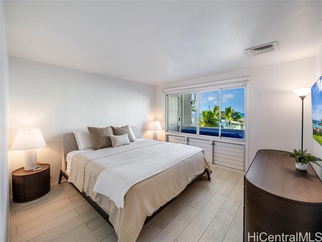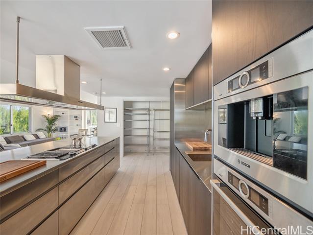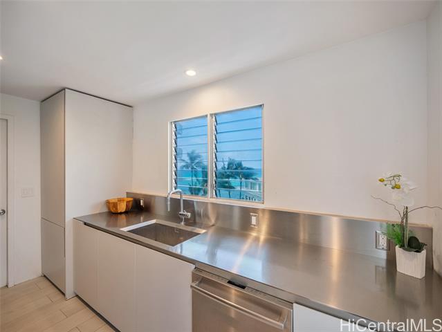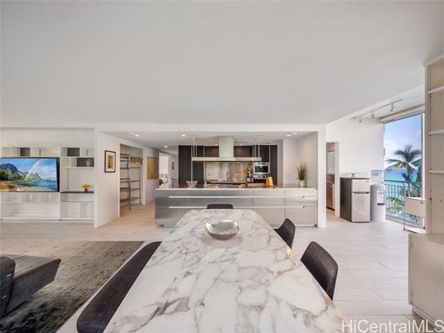 Experience rare Gold Coast living at Diamond Head Apartments, an iconic Ossipoff-designed oceanfront building set on the slopes of world-famous Diamond Head. Located in one of Honolulu’s most sought-after neighborhoods, this luxury condominium offers the building’s most spacious floor plan and an exceptional opportunity to secure one of the best values on the Gold Coast. Thoughtfully positioned to capture sweeping views from the ocean to the mountain, the residence enjoys excellent cross-ventilation and cooling trade winds throughout the day. The unit is in good condition and recently remodeled, offering a strong foundation with room for tender loving care to further elevate its potential. The designer kitchen features Poliform cabinetry, a Gaggenau range, Bosch espresso maker, oven, dishwasher, and refrigerator, complemented by a custom stainless steel kitchen island. With its premier oceanfront setting, architectural pedigree, generous interior space, and natural airflow, this residence presents a rare opportunity to personalize a classic Gold Coast home.