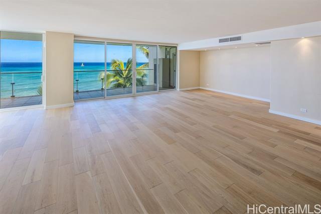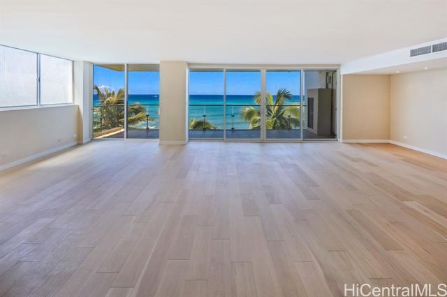 Direct Oceanfront apt in one of the most desirable, luxurious buildings on the Gold Coast overlooking famous surf spot from living area, and Diamond Head from each bedroom. Only two apts per floor. Apt. 7B has 2 bdrms, 2 baths, plus spacious office/media room or den. Storage in building and A/C in apt. Brand new floors throughout recently installed. In addition to covered, gated garage parking for all owners, the front deck has 14 guest parking spaces. Entrance lobby has video call-up and keyed elevator. Resident manager on site. Private and quiet, but in close proximity to parks and Waikiki. Pet friendly building.