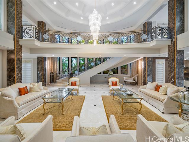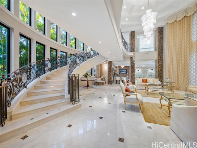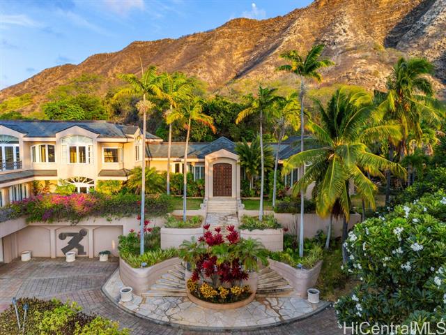 Welcome to the private, gated “DIAMOND HOUSE” a truly one-of-a-kind masterpiece in Hawaii! This luxurious mansion offers over 16,000 sq. ft. sophisticated living space with 8 bedrooms, 9 full bathrooms, and 2 half bathrooms. The estate is designed for the ultimate in luxury living, with a dramatic tropical landscape showcased as living art – complete with a half-moon fountain pool and a cascading custom waterfall. Highlights include:Grand princess staircase leading to a primary suite with breathtaking ocean, Diamond Head and Waikiki views. Swarovski chandeliers and exquisite imported finishes throughout,3000+ bottle wine cellar for collectors, butler’s pantries & wet bars for refined entertaining, 4-car garage + 6 driveway spaces for ultimate convenience when your guests arrives. Beyond the home itself, enjoy the serenity of your private paradise – hiking among plumeria, listening to Hawaiian birdsong, and watching butterflies drift through the gardens. This iconic estate was crafted by the legendary developer Jack Myers, blending timeless elegance with unmatched craftsmanship. Gated entry ensures both privacy and security for your family and guests. Don't miss this opportunity!
