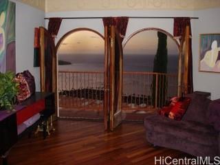 Panoramic view of Pacific Ocean from Koko head to Diamond Head. Mediterranean style house built by Bill Benjamin. 2 balconies to sit out and enjoy Ocean Views. 5 bedrooms and 5 baths. Master bedroom photo shown with ocean from balcony. Located on a Corner Lot at Hawaii Loa Ridge, 930 feet above the sea level. Landscapping includes 83 tall trees such as Hollywood Juniper and Italian Cypree trees. 16' tall living room,12' tall rooms on ground floor including kitchen, dinning room, and two bedrooms. Solid, not veneer, koa wood floors throughout. Recently repainted interior and exterior. Spilt AC. Estimated 4,400 sq ft living space. Large Courtyard with water Feature. Genune underground wine cellar 159 sq ft and can hold 1300 bottles and storage space. Two large walk in closets. Over 600 sq ft of extra storage space. Main Kitchen contains Sub Zero fridge and Viking gas stove. Jacuzzi. Master has a wet Bar. New water Heater Wall relief sculptures imported from Italy together with impressionist painting.