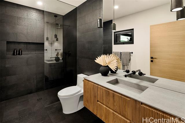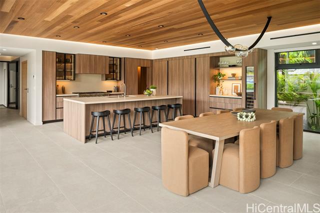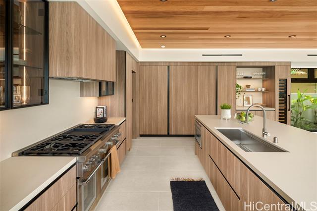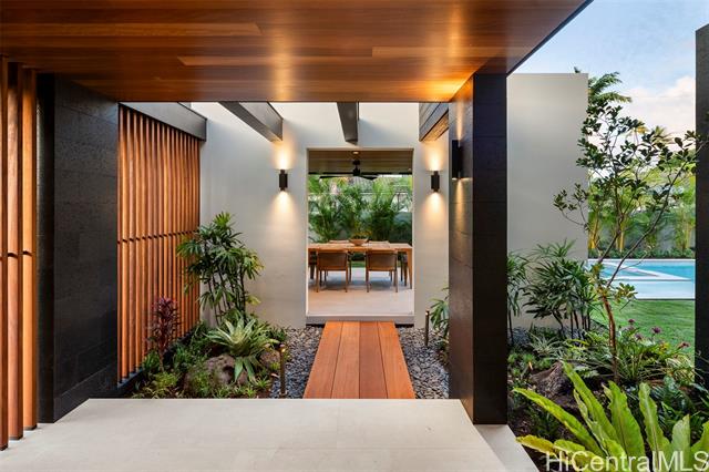 Where Modern Design Meets Island Luxury… Stunning brand new Kahala 5BD/5.5BA residence blends striking modern architecture with resort-style comfort. Iroko wood accents, Shou Sugi Ban siding, & natural lava stone adds warmth, depth & texture. Lush lawns surround the pool & spa, set amid tropical palms & trees. Dramatic covered lanais create seamless indoor-outdoor living, while a poolside pavilion provides the ideal setting for dining al fresco. The great room features custom wood-inlaid ceilings, expansive glass pocket doors & Italian porcelain tile that flows naturally to the lanai. The chef’s kitchen includes premium appliances, Italian cabinetry, spacious island w/ Dekton counters & dine-in seating. The impressive primary suite offers an abundance of space, oak floors, luxe walk-in closet, & a stunning tadelakt plaster bath. Lovely bdrm suites offer contemporary baths, walk-in closets & balcony access + one with a private entry, is perfect for guests, live-in help, or home office use. Addt’l highlights include a sculptural staircase, statement lighting, motorized shades, elevator & 3-car garage. Rarely does a new home of this caliber come to market in Hawai‘i. Simply amazing!