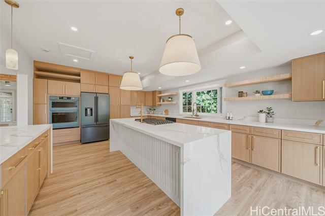 RARELY FOUND IN KAHALA...this newly renovated property offers a versatile, multi-dwelling layout presenting an island estate where flexibility and luxury lifestyle converge. Set on an expansive 12,000+ sqft parcel, this fully enclosed compound has been thoughtfully reimagined to deliver the ultimate turnkey retreat. The fabulous single-level main residence offers 3BD / 3.5BA, showcasing soaring ceilings, custom finishes, a beautiful chef's kitchen, and seamless indoor/outdoor flow. The large Primary Suite offers a lovely soaking tub, a large tiled shower and walk-in closet. WHAT TRULY SETS THIS PROPERTY APART is a rare multi-structure compound featuring two fully appointed private cottages, perfect for extended Ohana, executive stays, 2 home offices, guest accommodations, or income potential...making its versatility unmatched in Kahala. Outside, a sparkling pool serves as the centerpiece of the landscaped grounds, ideal for entertaining, relaxing, or enjoying a quiet morning under the Hawaiian sky. Perfectly positioned just moments from Waialae Country Club, Kahala Hotel & Resort, and the area’s renowned white sand beaches. Actual number of beds & baths do not match TMK records.