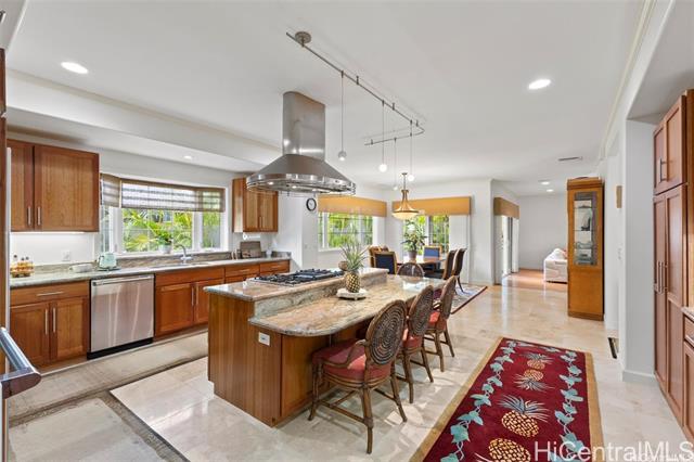 An award-winning residence in the prestigious Kahala neighborhood finely constructed with attention to detail and quality. This single level home of 3-bedrooms, 2 full baths, & 2 half baths blends modern elegance with timeless Hawaiian charm, offering an easy and comfortable living experience. The chef's kitchen is equipped with Thermador and Sub-Zero appliances, custom cabinetry, and a large countertop, ideal for culinary creations and gatherings. The open-concept living spaces, high ceilings, and seamless indoor-outdoor flow, are perfect for entertaining. The level lot showcases a landscaped garden and a spacious lanai, creating a private retreat for enjoying Kahala's idyllic climate. Equipped with a fully owned PV system, central air conditioning, pre-wired speakers, and a generously sized garage. Located in the heart of Kahala, minutes from world-class beaches, Kahala Mall, Waialae Country Club, and top-rated schools, providing both tranquility and convenience.