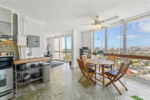 Looking for a stunning condo with breathtaking views in Kaimuki? Look no further than this amazing 2 bedroom, 1.5 bathroom unit located on the 15th floor. Step inside & you'll immediately be struck by the modern & sophisticated design, with sleek concrete floors and contemporary finishes throughout. Large spacious windows in the entire condo offer unobstructed views of the surrounding city, ocean & mountains. Sunsets never get old here! The kitchen is open and inviting, with open cabinetry, and a farm sink you dream about. Enjoy your morning coffee or evening cocktails from anywhere in this condo where you can soak up the stunning panoramic views. Both bedrooms are generously sized and offer ample closet space, while the bathrooms are outfitted with contemporary fixtures and finishes. Located in desirable Kaimuki, you'll be just minutes away from some of Oahu's best shopping, dining, & entertainment options and will also appreciate the easy access to public transportation and H1. Laundry is located just around the corner from this unit and so is your extra storage locker too! Seller to pay off Special Assessment upon closing!!!