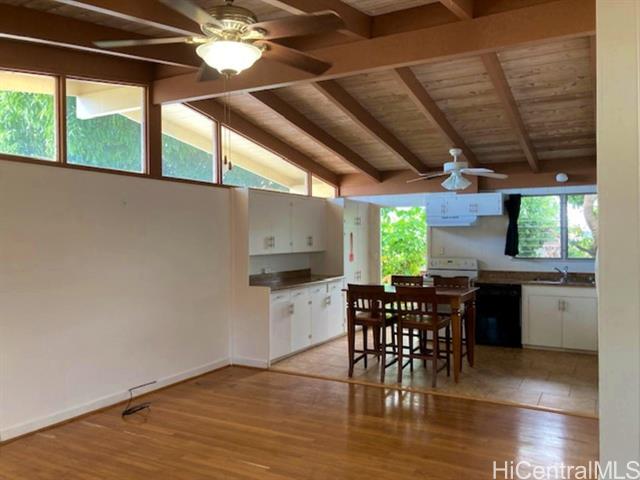 The family house has "home" feeling, is cool and shaded under two mango trees, and surrounded by green. Large open concept living room filled with bright sunny light. The high living room ceiling has wooden beams. Revitalized wood oak floors. Fairly large bedrooms, and the primary bedroom has its own sink and toilet. Big open kitchen with loads of storage, a Window over the sink gets valley breezes. Lime, plumeria, and lichee trees. Private driveway into a flag lot nestled in a quiet and safe neighborhood. Huge roomy carport with outside parking. Location is in the heart of town, close to beaches, Diamond Head, Kahala Mall, Kapiolani Park, Waikiki, Foodland, Safeway, Times, and Long's (CVS). Nearby to schools, University of Hawaii, Kapiolani Community College (KCC), Chaminade, Sacred Hearts Academy, and the famously good school - Liholiho Elementary School, only 2 blocks away. Up the hill from Iolani School. The bus stops very close. Do not disturb the tenant. ADU Permit Approved.