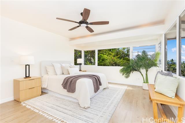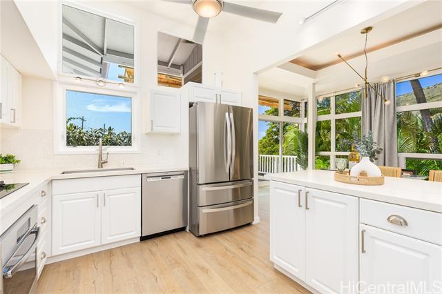 Welcome to Kalani Iki Estates, a serene, resort-style community in a lush East Honolulu valley. This beautifully upgraded home offers privacy, space, and convenience just minutes from Kahala, top schools, beaches, and freeways. The 3-level home features 5 bedrooms, 3 bathrooms, and 2,122 sq ft of living space. High ceilings and an open main living area bring in ample natural light. Upgrades include renovated kitchen & bathrooms, vinyl flooring, stainless steel appliances, generous storage, and a private yard. Enjoy indoor–outdoor living & entertaining on the 284 sq ft lanai with Diamond Head, ocean, and valley views, cooled by trade winds. The desirable “corner lot” location offers added privacy and unobstructed views. There are 2 assigned parking stalls and guest parking. Kalani Iki Estates offers resort-style amenities: a pool, rec center, tennis, pickleball, basketball courts, and shaded walking paths. The HOA covers landscaping, irrigation, trash pickup, premium cable, 500 Mbps internet, basic streaming services, and on-site management. Rare opportunity to own a spacious, well-maintained home in East Honolulu! Open house 2/28 1-3pm, 3/1 2-5pm, 3/8 2-5pm, offers due 3/9 5pm.