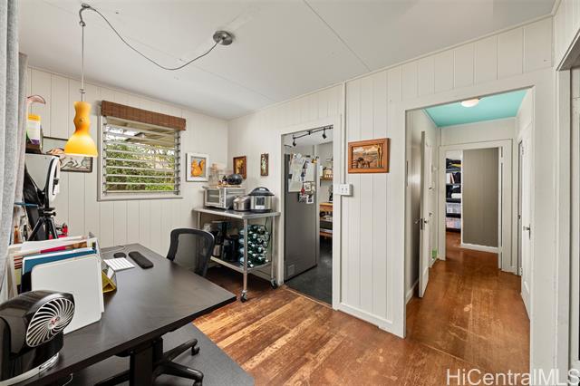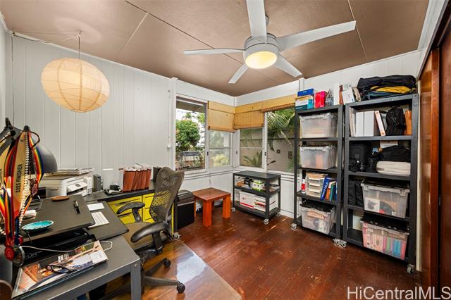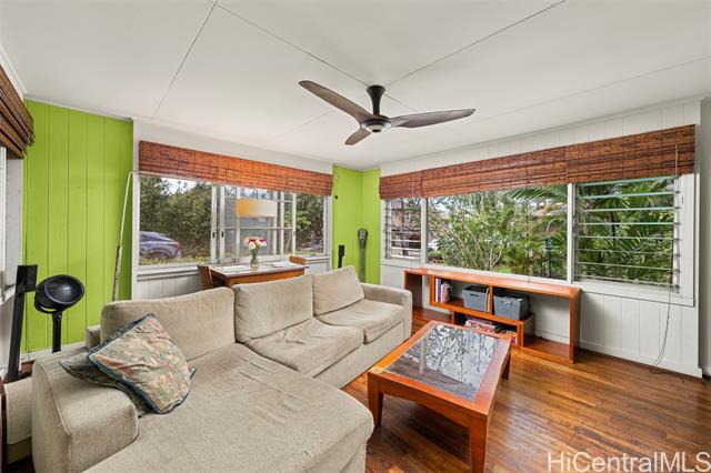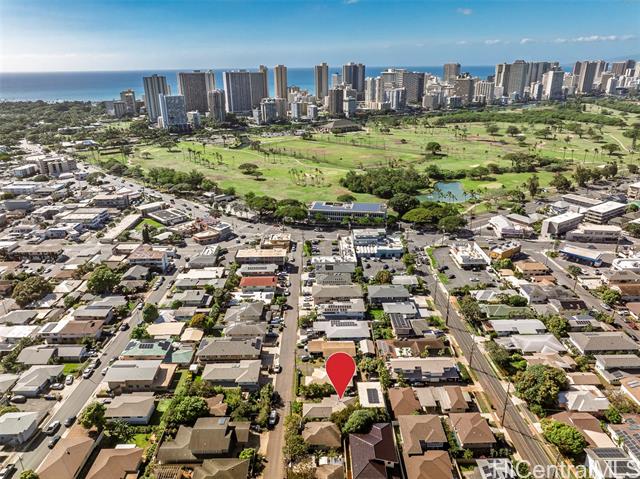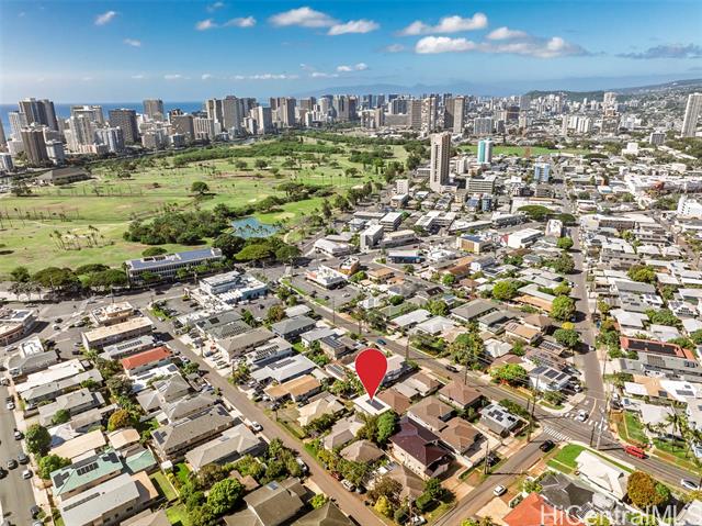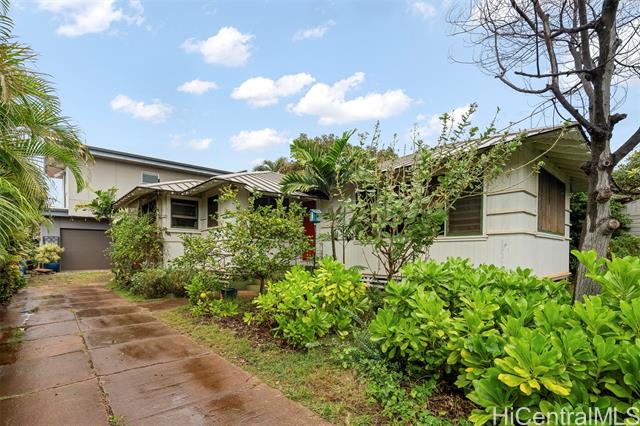 Discover a gem of a property in vibrant Kapahulu, ideally located near Waikiki, Diamond Head, Kapiolani Park, dining, and world-class beaches. This versatile home (2 structures) sits on a spacious 5,000 sq. ft. lot and features an original 1940s 3-bedroom, 1-bath residence with a metal roof (installed in 2005) and updated electrical and plumbing (redone in 2001). The main home offers approximately 988 sq. ft. of living space, complemented by a newer structure (2012) with an additional 640 sq. ft. of living area. A major upgrade in 2012 replaced the original detached garage with a new 2-car garage, laundry room, and a recreation room. The recreation room, complete with a full bath and wet bar, is currently used as an office and guest suite - perfect for flexible living arrangements. The new structure is expertly built with robust steel beams, ensuring exceptional durability and lasting value for years to come. For energy efficiency, the property includes 16 net-metered photovoltaic panels installed in 2012. Enjoy the lively Kapahulu community and the convenience of nearby amenities, making this property an exceptional opportunity in Honolulu.